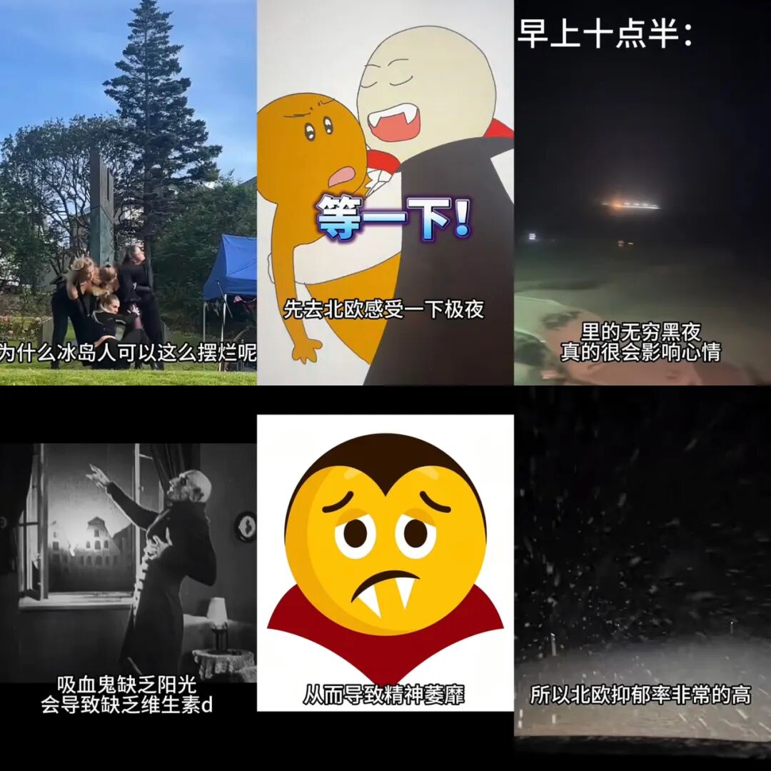 不过最美妙的还是冰岛人抽象的精神状态,就像Elly在新生见面会上学到的一句冰岛语“Þetta reddat”,大意为“别担心啦,一切都会好的啦”,这也是冰岛人遇事不决拖一拖,赶due从最后一刻正式开始的精神座右铭和行动方针。像公交车永远不准时、工作人员卡点上门这种全员拖延症晚期的事例屡见不鲜。虽然冰岛人人都在拖延的路上,这种看似幸福的生活状态并不妨碍它是一个抑郁高发的国家,漫长的极夜也就意味着鲜少和太阳打上照面也许是抑郁的罪魁祸首,所以冰岛人一会儿在日照灯下嗑维生素D和鱼油,一会儿在无边黑暗里emo,难免精神状态失常。