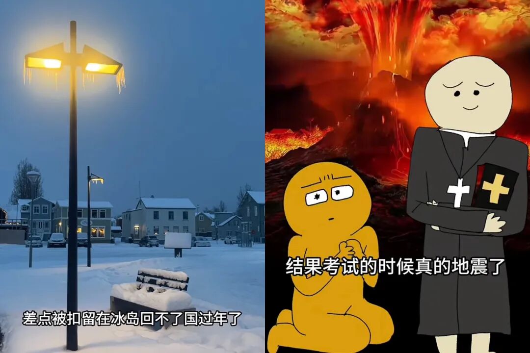 为了关爱每个人的身心健康,冰岛组织了很多丰富的活动,好在冰岛人口少,Elly有机会沉浸式地体验一把当地的民俗文化和各种抽象的表演。她还作为亲历者,见证了我们在新闻里才能看到的三次火山爆发和1400多次地震。Elly生活在首都,离火山爆发点和震源都有一定的距离,身为“战地记者”的她租了直升机去拍火山爆发,不巧只赶上了爆发的末尾,但也算有所收获!