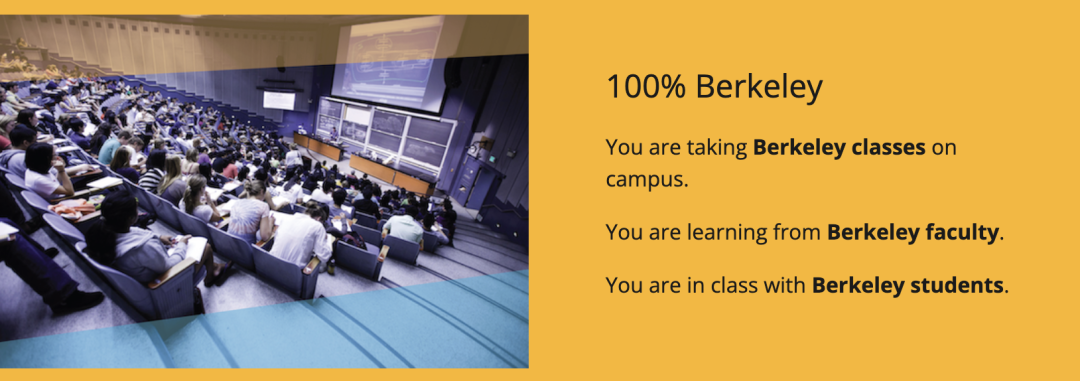 100%Berkeley:学生每学期可以选修12学分课程,与伯克利本校学生及其他国际生一起学习,零距离体验原汁原味的世界级名校学术课程,真实体验世界名校的学术氛围、参与课堂讨论,实时互动,锻炼英语及全方面的能力