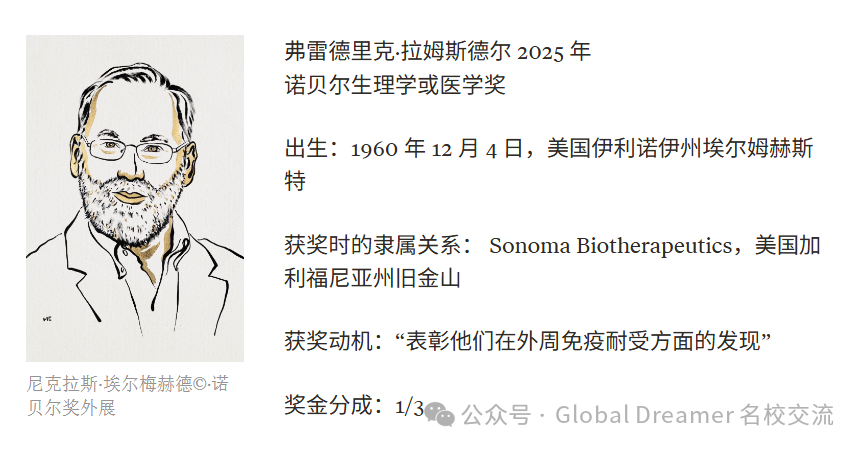 2025 年诺贝尔奖科学类奖项名单公布后,全球学界的焦点不约而同落在了美国加州大学(UC)系统 —— 这所公立大学联盟以 “5 位获奖者直接关联” 的亮眼成绩,在 9 位得主中占据半壁江山,用跨越物理、化学、生理与医学三大学科的硬核实力,再次刷新了公众对公立教育科研潜力的认知。 <br>x26lt;a href=x26quot;https://mp.weixin.qq.com/s?__biz=Mzk0MDg3MzUwOA==x26amp;amp;mid=2247511664x26amp;amp;idx=1x26amp;amp;sn=089d336e61273070ec57a75920af705cx26amp;amp;scene=142#wechat_redirectx26quot; class=x26quot;normal_text_linkx26quot; target=x26quot;_blankx26quot; data-itemshowtype=x26quot;0x26quot;x26gt;【春季学期项目】即将截止!UCB加州大学伯克利分校2026年春季学期交流项目申请中x26lt;/ax26gt;<br>x26lt;a href=x26quot;https://mp.weixin.qq.com/s?__biz=Mzk0MDg3MzUwOA==x26amp;amp;mid=2247510354x26amp;amp;idx=1x26amp;amp;sn=ab8370a21c7bf4a6d295bbb1e74a322cx26amp;amp;scene=142#wechat_redirectx26quot; class=x26quot;normal_text_linkx26quot; target=x26quot;_blankx26quot; data-itemshowtype=x26quot;0x26quot;x26gt;【冬/春季学期】UCLA加州大学洛杉矶分校2026年冬/春季学期申请倒计时!x26lt;/ax26gt;<br><br>✨️物理学奖:三代人攻克 “宏观量子” 难题 <br><br>2025 年诺贝尔物理学奖授予约翰・克拉克(John Clarke)、米歇尔・H・德沃雷特(Michel H. Devoret)、约翰・M・马蒂尼斯(John Martinis),以表彰他们 “发现电路中的宏观量子力学隧穿和能量量化”。<br><br>🧬生理或医学奖:UCLA 博士破解 “免疫耐受” 密码 <br><br>弗雷德・拉姆斯德尔(Fred Ramsdell),1987 年从加州大学洛杉矶分校(UCLA)获得博士学位,是典型的 “UC 培养科学家”🎓。他在研究 “scurfy 小鼠” 时,经数年比对找到 “FOXP3 基因”,这一基因是调节性 T 细胞的 “总开关”,奠定了现代免疫耐受理论基础。 <br><br>🔬化学奖:UCLA + 伯克利双校经历催生 “材料革命” <br><br>因开创 “网架化学” 获奖的奥马尔・亚吉,早年在 UCLA 任教,2012 年转至加州大学伯克利分校,他发明的 “金属有机框架(MOF)材料” 能捕捉空气中的水、高效储存氢气,展现了 UC 系跨校区协同创新的优势。从 UCLA 到UCB,他的研究串联起 “基础化学→应用材料→现实落地” 的完整路径,展现 UC 系跨校区协同创新的优势。 <br><br>此次的“集中爆发” 并非偶然 —— 自 1939 年UCB物理学家欧内斯特・劳伦斯(Ernest Lawrence)凭 “回旋加速器” 获物理学奖以来🏅,UC 已孕育出超 70 位诺贝尔奖得主,在全球公立大学中遥遥领先。2025 年的诺奖舞台只是其 “日常科研积累” 的一次绽放。 <br><br>更特别的是,在伯克利校园,没有华丽的雕像或仪式,取而代之的是写着 “Reserved for NL(Nobel Laureate)” 的亮蓝色专属停车位🅿️。<br>x26lt;a href=x26quot;https://mp.weixin.qq.com/s?__biz=Mzk0MDg3MzUwOA==x26amp;amp;mid=2247502466x26amp;amp;idx=1x26amp;amp;sn=c3109ff2c531ff92e1d2e7a95c3e1b56x26amp;amp;scene=142#wechat_redirectx26quot; class=x26quot;normal_text_linkx26quot; target=x26quot;_blankx26quot; data-itemshowtype=x26quot;0x26quot;x26gt;想在加州大学伯克利分校停车?先拿个诺奖吧!x26lt;/ax26gt;