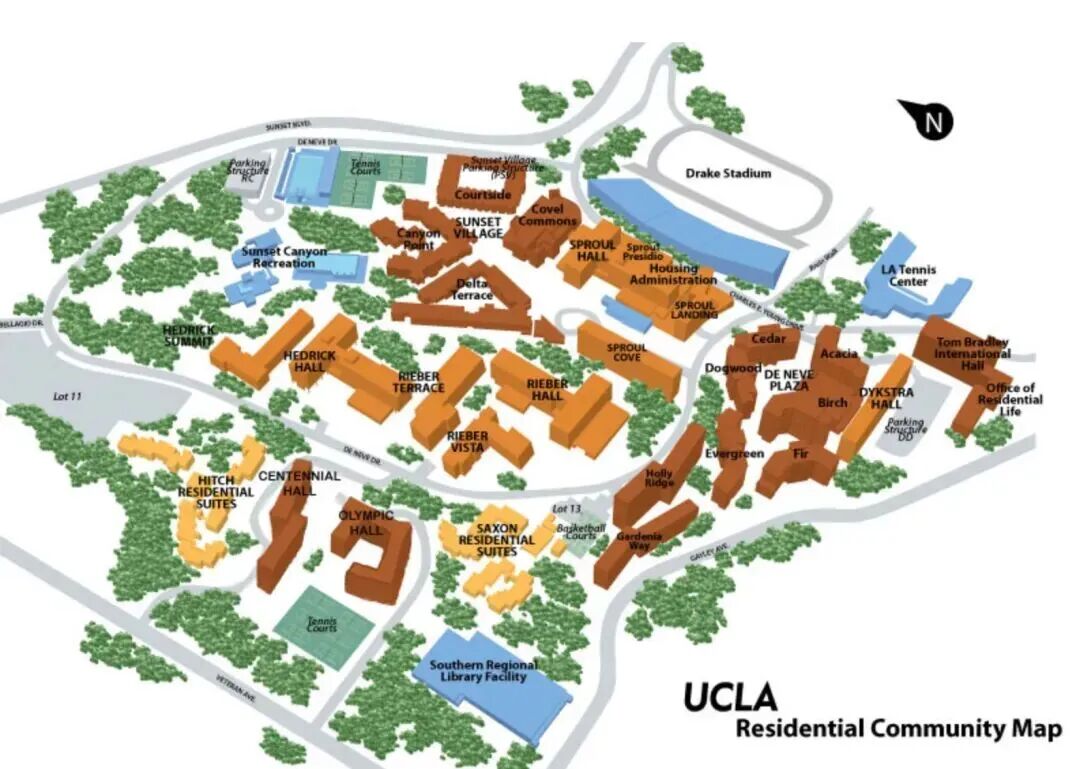 UCLA住宿楼将作为2028洛杉矶奥运会运动员住宿楼,基础设施建设完善,房间一般都配有空调与免费WIFI,同时也为每位学生配有书桌椅、书柜等。宿舍楼内配有浴室、音乐练习室、自习室、机房、洗衣房等基础设施。房间内提供床单、枕头和毛毯。