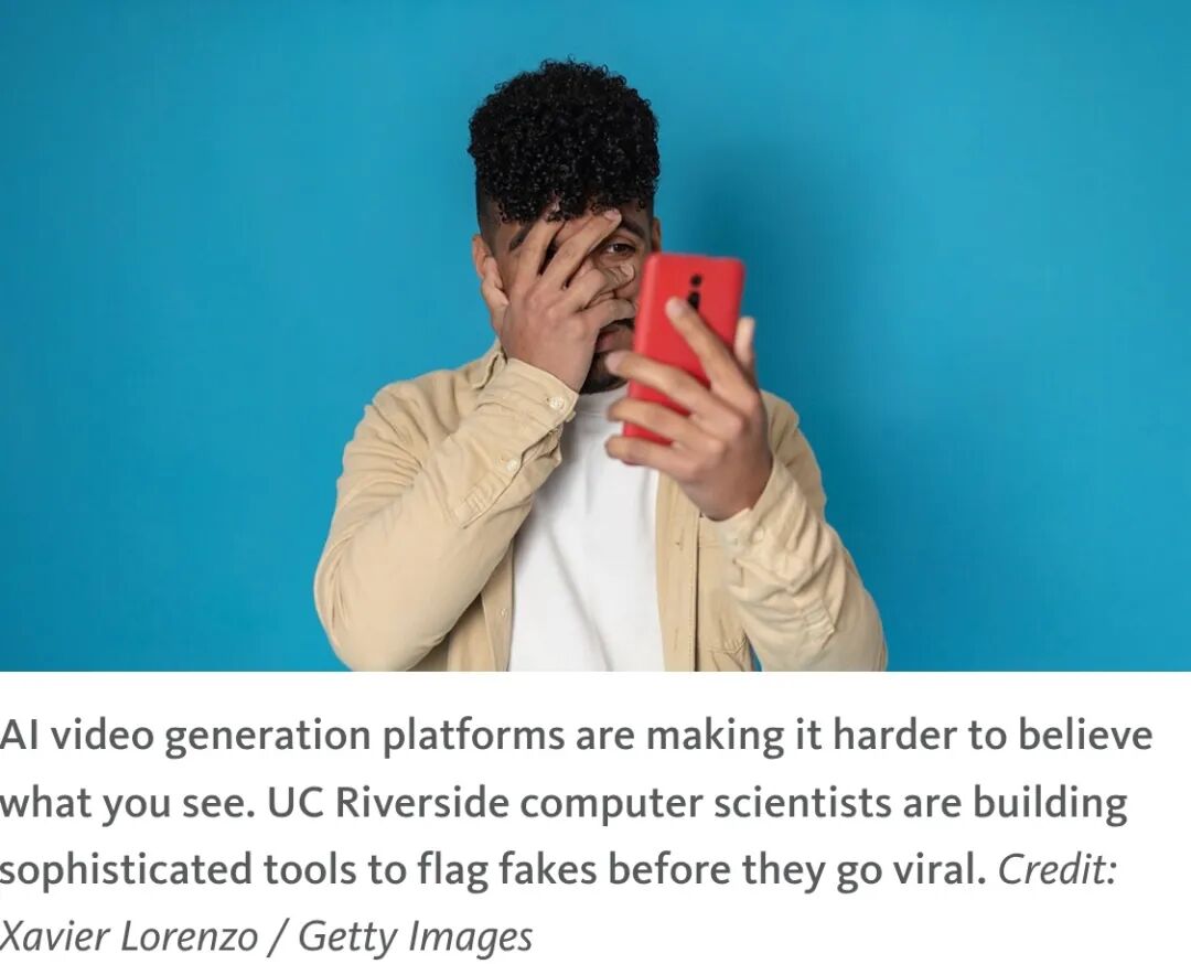 随着AI视频生成工具泛滥,“深度伪造”的威胁日益严峻。加州大学河滨分校的研究团队与谷歌合作,开发了名为“UNITE”的通用检测系统。