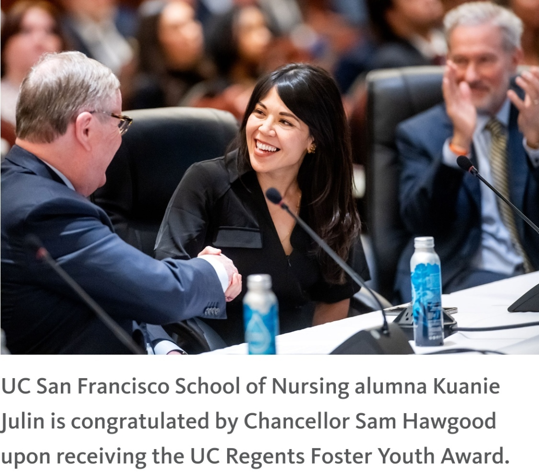 关妮·朱琳于2024年从加州大学旧金山分校获得护理硕士学位,现在是一名外科护士。她因参与UCSF守护者学者计划而获得校董会寄养青年奖,该计划支持UCSF曾经的寄养青年攻读研究生和专业学位。