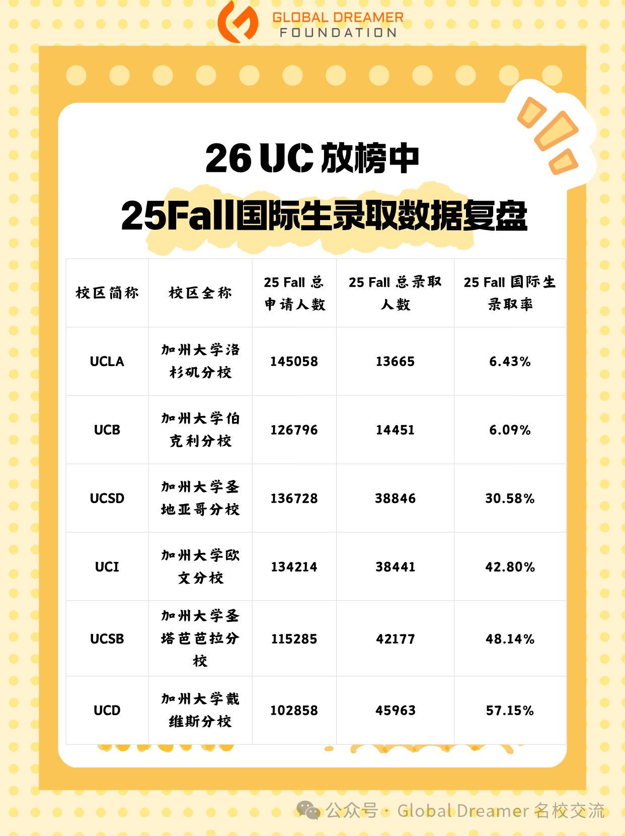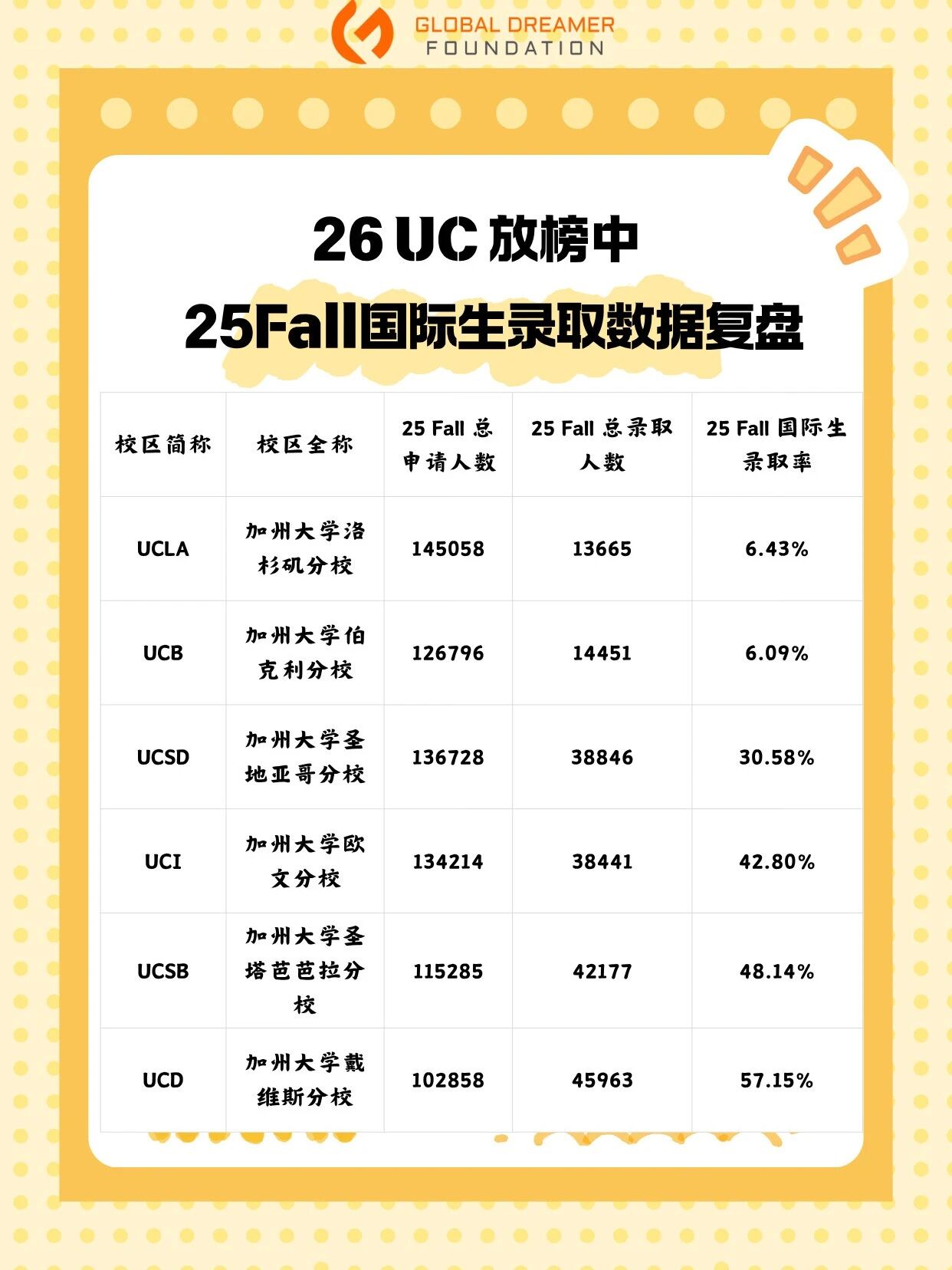 2026加州大学UC放榜中,25Fall录取数据复盘